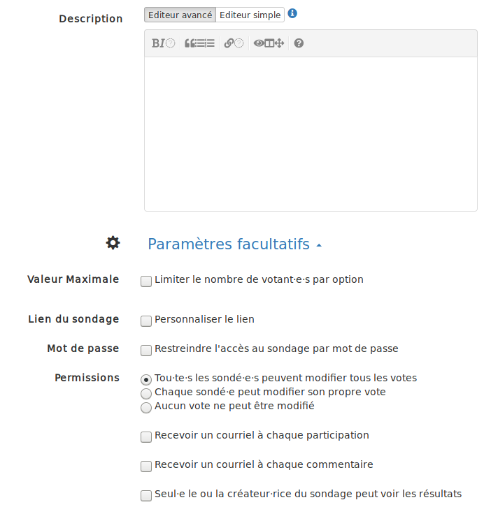 Scoodle a lui aussi eu son lot de nouveautés, avec par exemple la possibilité de limiter le nombre de réponse pour un choix donné, protéger un sondage par mot de passe, mettre en forme la description des sondages, ajouter des dates de manière multiple, et faire des votes ’anonymes’ seulement visibles par le créateur du sondage.