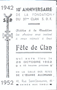 Le 26 octobre 1952, le Clan fête dignement son 10° Anniversaire : messe, cérémonie, représentation très réussie de "JEOFFROI" et souper aux chandelles.