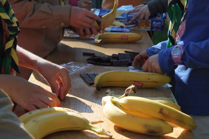 Une fois la banane cuite (10-15 minutes selon l’efficacité du feu, une astuce est de regarder si la peau a bien noirci), sors la du feu.