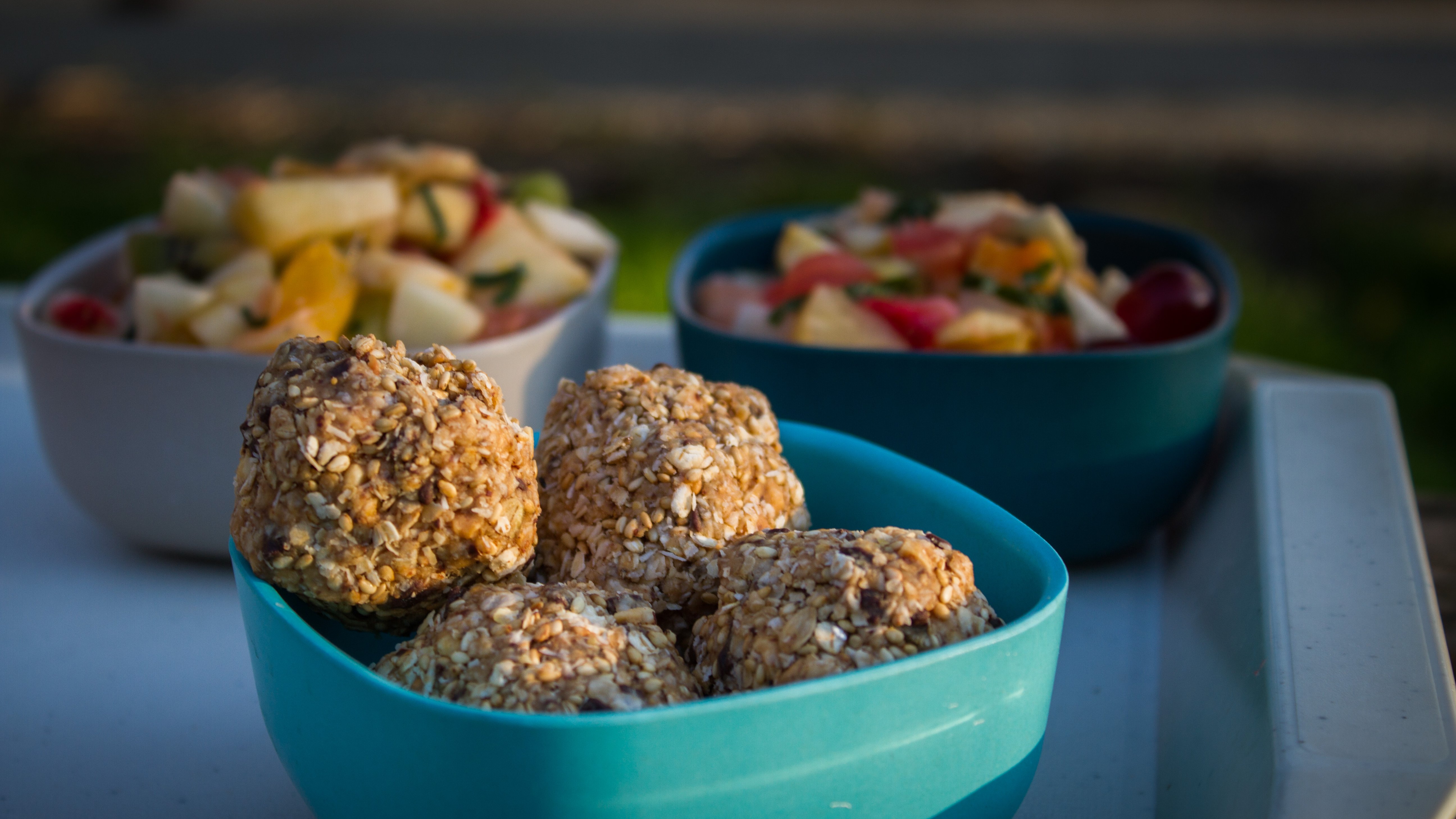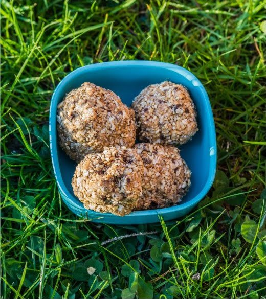 Une fois la préparation homogène, tu formes des petites boules dans le creux de ta main. Tu réserves ensuite la préparation au frais pour que les boules se figent bien. Si tu pars en rando et que tu veux faire ces boules comme en-cas, il faut juste anticiper leur préparation pour qu’elles puissent reposer au frais. Durant mon camp, nous les faisions la veille au soir.