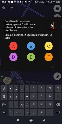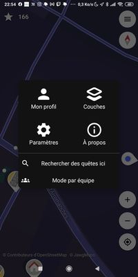 Une fois que tous les membres ont l’application active, tu peux former une équipe pour cartographier ensemble. Pour ça clique sur le menu burger (les trois traits horizontaux en haut à droite)