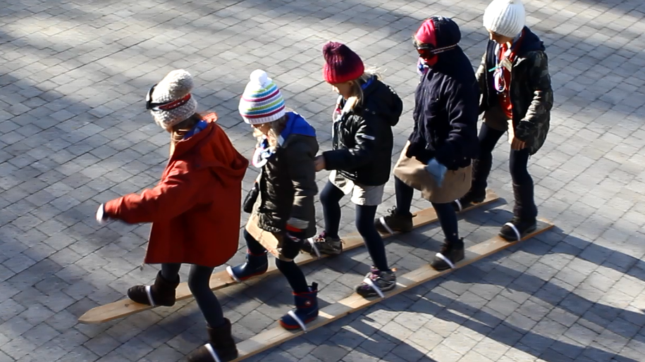 Poncer le tasseau sur la partie haute pour les arrondir (zone de position des mains) et tester les échasses !!