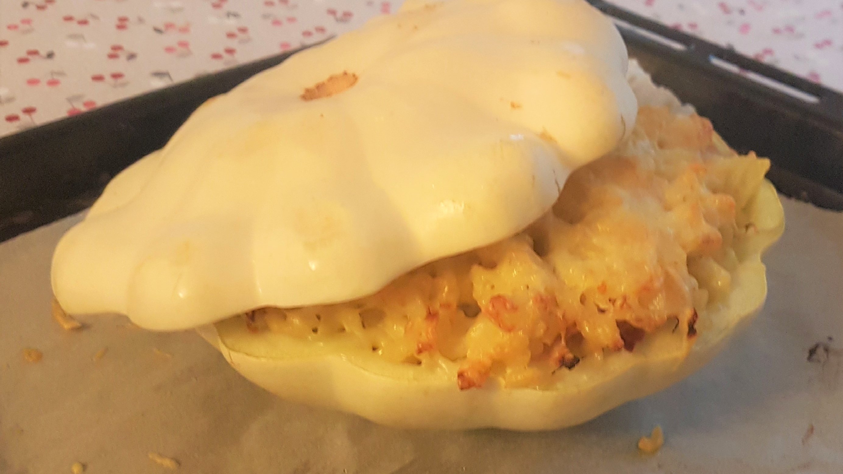 Quand les criques sont cuites, pose sur chacune une tranche de fromage pour qu’il fonde un peu. Empile ensuite :