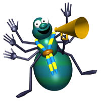Cela fait un certain temps que l’équipe souhaite se doter d’une mascotte mais faute de dessinateur, nous mettons ce projet en suspens. L’arrivée d’un nouvel acteur (Jean) qui manie très bien les logiciels de dessin 3D nous permet de nous pencher sur notre mascotte. Au départ une abeille, elle deviendra finalement une araignée avant de faire son apparition officielle sur LaToileScoute à la fin 2003.
