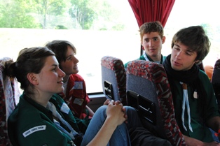 C’est dans le car qui emmène les participants sur Paris que nous rencontrons les 4 compères. Ils viennent de Poitou-Charentes, et cumulent les mandats : Clotilde est également cheftaine chez les pionniers, alors que les 3 autres sont dans la même équipe 1er temps compagnons. Ils sont venus à G2D pour découvrir d’autres personnes, faire des rencontres enrichissantes, et apprendre plein de choses sur le monde de l’enfance. Leurs attentes n’ont pas été déçues, et pour eux l’animation est géniale et l’organisation impeccable. Un petit message pour leurs louveteaux? ? "On pense à vous ! Vous voyez ce que vous nous faites faire ?! On revient avec plein de projets ! On vous aime !" Ils trouvent également que "Cléophas est un BG" et que "Clément G ressemble à Luc Patou [1]"