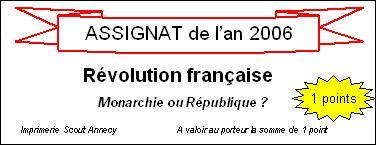 – Des assignats : 40 assignats pour chaque camp soit environ 120 assignats en tout. (cf modèle joint)