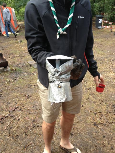 Une cafetière à l’italienne, c’est pour les italiens. La preuve, ça fait un café plutôt fort sauf à mettre vraiment très peu de café dans le réservoir. Si jamais tu as le malheur de tasser ton café, d’avoir un café moulu un peu trop fort ça donne un café tellement fort, qu’avec une seule tasse, on est approximativement certain d’être dépendant à vie. Ça prend de la place. C’est élitiste. En plus, le manche est en plastique (ou alors elle coûte le budget du camp), le manche fond à la première utilisation et on ne peut plus l’attraper, on la laisse au milieu du feu et on la récupère à la fin du camp, sans avoir réussi à boire un seul café.