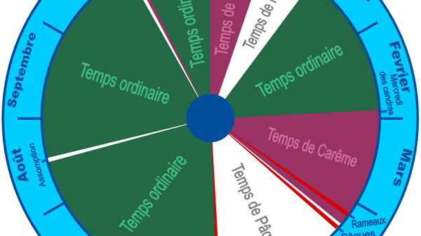 L’année liturgique commence avec l’Avent qui annonce la naissance de Jésus à Noël.
