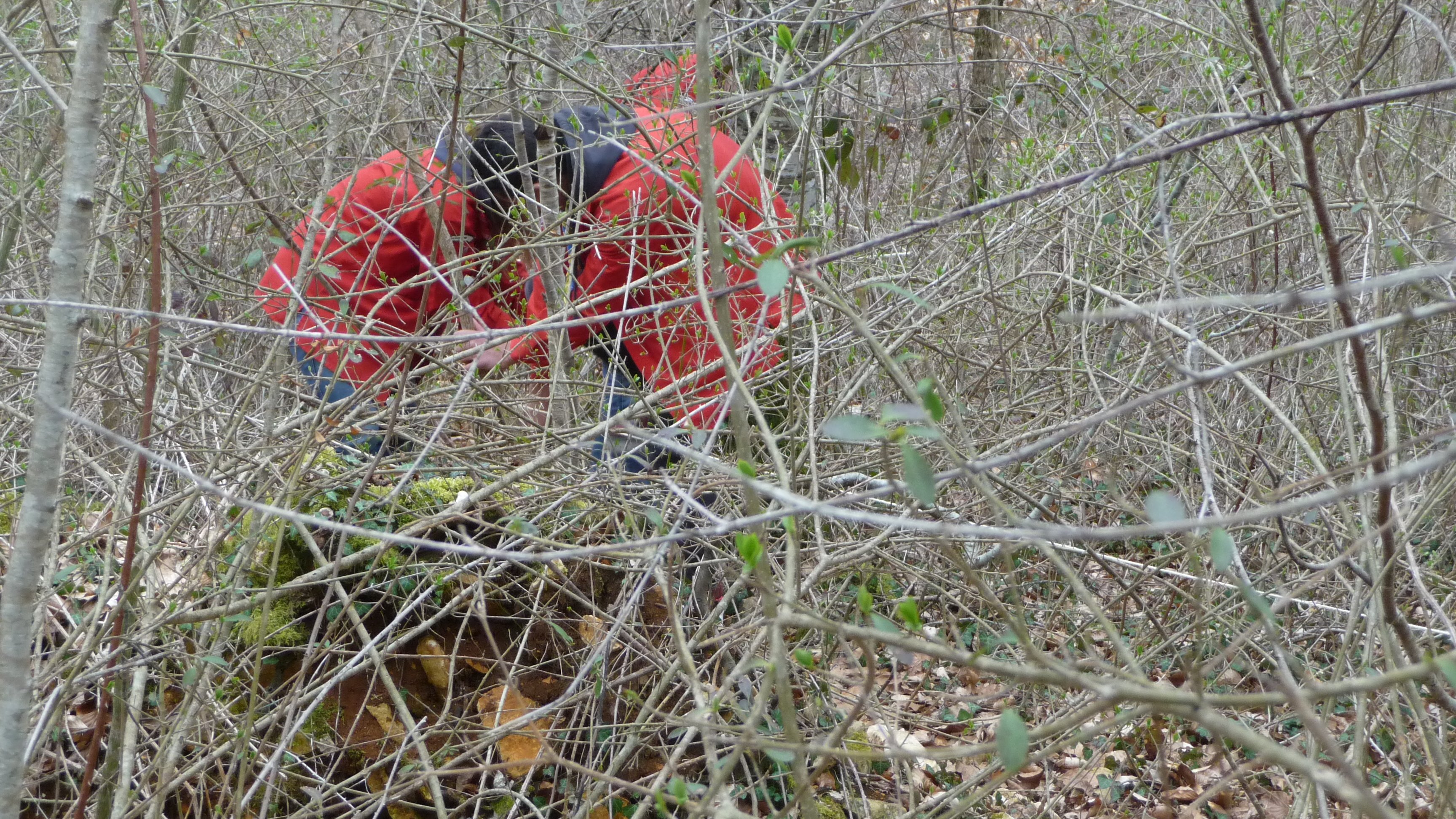 Un parcours en forêt les yeux bandés en suivant un fil.
