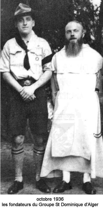 – janvier 1935 : Les Scouts sont recueillis par le couvent de Dominicains d’Alger et, en remerciement, la Troupe prend le nom de Troupe St Dominique 1ère Alger. Aumônier : Père Lefèvre, dominicain (1900-1978) qui sera l’aumônier du Groupe de 1935 à 1963 puis des Anciens du Groupe de 1963 à son décès en 1978.