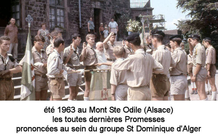 Comme il est expliqué dans ce texte, nous sommes venus à de nombreuses reprises en Alsace pour camper, pour nous souvenir... C’est là, à Oberhaslach, sur le pré situé en face de la maison forestière de Weinbaechel, que le Groupe fut officiellement dissous le dernier jour du dernier camp d’été de 1963. Quelques jours auparavant, les ultimes Promesses du Groupe avaient été prononcées au Mont Ste-Odile.