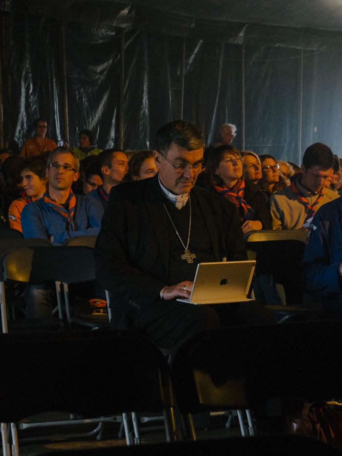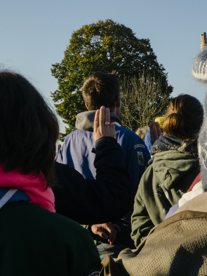 Ça y est c’est la fin de ce weekend, mais avant de partir, nous nous réunissons autour du feu de camp pour recevoir l’engagement de 24 responsables et chefs, tous motivés par leurs différentes expériences dans le scoutisme. L’heure de la messe arrive, célébrée par l’aumônier national. Vient ensuite la cérémonie de cloture du rassemblement.