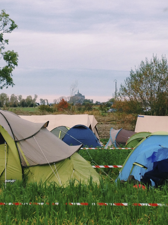À peine arrivés sur place, une première une grande question existentielle s’est posée : où planter notre tente pour avoir la meilleure vue sur le Mont Saint-Michel ?