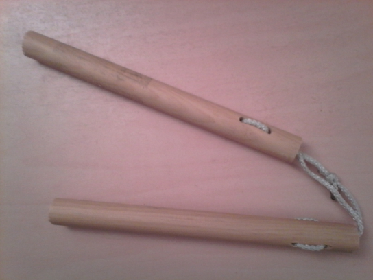 Le nunchaku est originellement un art martial qui nous vient du Japon moyenâgeux. Les paysans de l’île d’Okinawa ont détourné un objet de leur quotidien (probablement un fléau à riz, peut être un mors de cheval selon certains) afin de l’utiliser comme une arme. L’instrument est assez rapidement répandu en Asie comme partie intégrante des arts martiaux.
