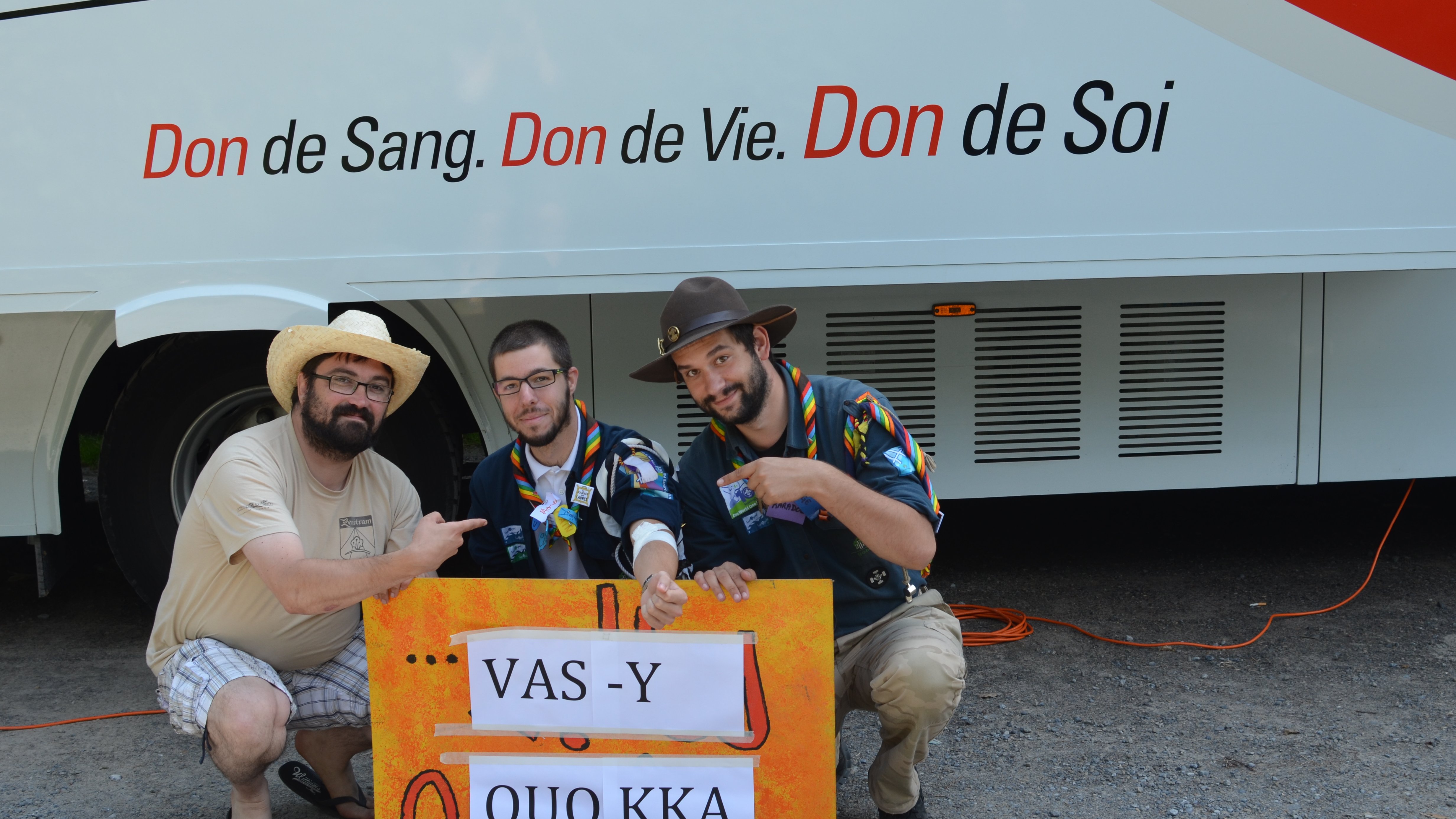 Comme l’année passée, le car de collecte de la croix rouge a fait une halte à Mozet, le domaine des Guides Catholiques de Belgique, pour permettre aux animateurs en formation de donner leur sang.