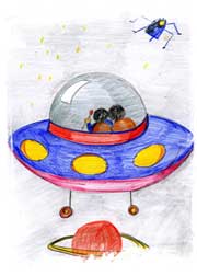 On était bien tranquille tous les 19 sur notre lieu de camp avec nos 3 cheftaines, après s’être installés les 2 premiers jours quand deux "M" ont débarqué à la veillée du deuxième soir... Ils étaient 3 au départ de leur planète "M" à vouloir aller en vacances sur Mars dans le camping qu’ils avaient réservé. Mais le pilote A440 a appuyé sur un mauvais bouton et ils ont atterris chez nous !!! Et il s’est blessé, donc à la veillée Csuper5 et A205 étaient un peu perdues. Elles nous ont appris une chanson sur A440 : La Chanson de l’Extraterrestre. C’est la vie de A440 avec sa femme Symphonie.