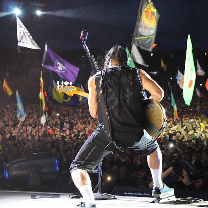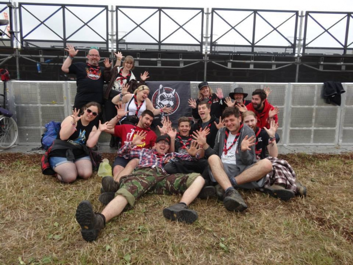 C’est en réalité un petit groupe informel de scouts anglais qui se rejoignent chaque année au Glastonburry Festival qui était présent, fans de Metallica, le drapeau bien visible.