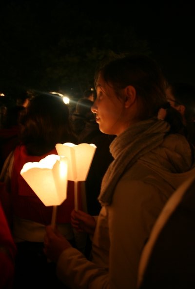 L’Esprit ouvre l’intelligence humaine à de nouveaux horizons qui la dépassent et lui fait comprendre que l’unique vraie sagesse réside dans la grandeur du Christ. Pour les chrétiens, la Croix symbolise la sagesse de Dieu et son amour infini révélé dans le don salvifique du Christ mort et ressuscité pour la vie du monde, pour la vie de chacun et de chacune d’entre vous en particulier. Puisse cette découverte d’un Dieu qui s’est fait homme par amour, cette découverte bouleversante vous inviter à respecter et à vénérer la Croix ! Elle est non seulement le signe de votre vie en Dieu et de votre salut, mais elle est aussi - vous le comprenez - le témoin muet des douleurs des hommes et, en même temps, l’expression unique et précieuse de toutes leurs espérances. Chers jeunes, je sais que vénérer la Croix attire aussi parfois la raillerie et même la persécution. La Croix compromet en quelque sorte la sécurité humaine, mais elle affermit, aussi et surtout, la grâce de Dieu et confirme notre salut. Ce soir, je vous confie la Croix du Christ. L’Esprit Saint vous en fera comprendre les mystères d’amour et vous crierez alors avec Saint Paul : « Pour moi, que la croix de notre Seigneur Jésus Christ reste mon seul orgueil. Par elle, le monde est à jamais crucifié pour moi, comme moi pour le monde » (Gal 6, 14). Paul avait compris la parole de Jésus – apparemment paradoxale – selon laquelle c’est seulement en donnant (« en perdant ») sa propre vie qu’on peut la trouver (cf. Mc 8,35 ; Jn 12,24) et il en avait conclu que la Croix exprime la loi fondamentale de l’amour et est la formulation parfaite de la vraie vie. Puisse l’approfondissement du mystère de la Croix faire découvrir à certains d’entre vous l’appel à servir le Christ de manière plus totale dans la vie sacerdotale ou religieuse !