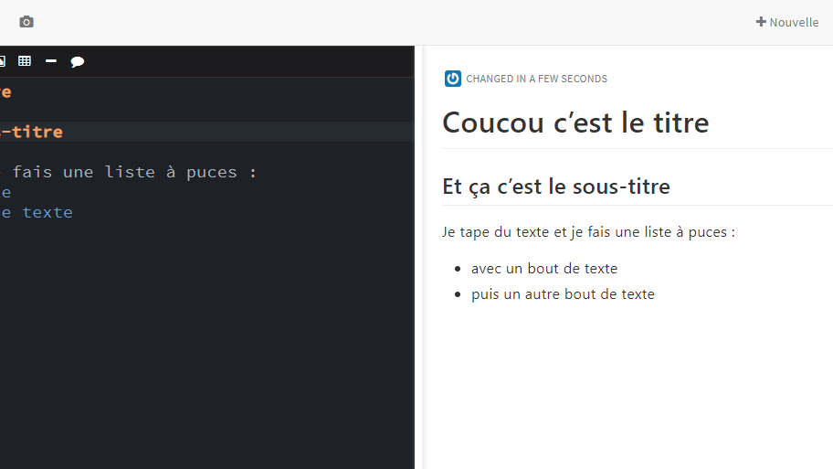Cela permet une prise de note avec un rendu propre en "live". A gauche on écrit, à droite on lit.