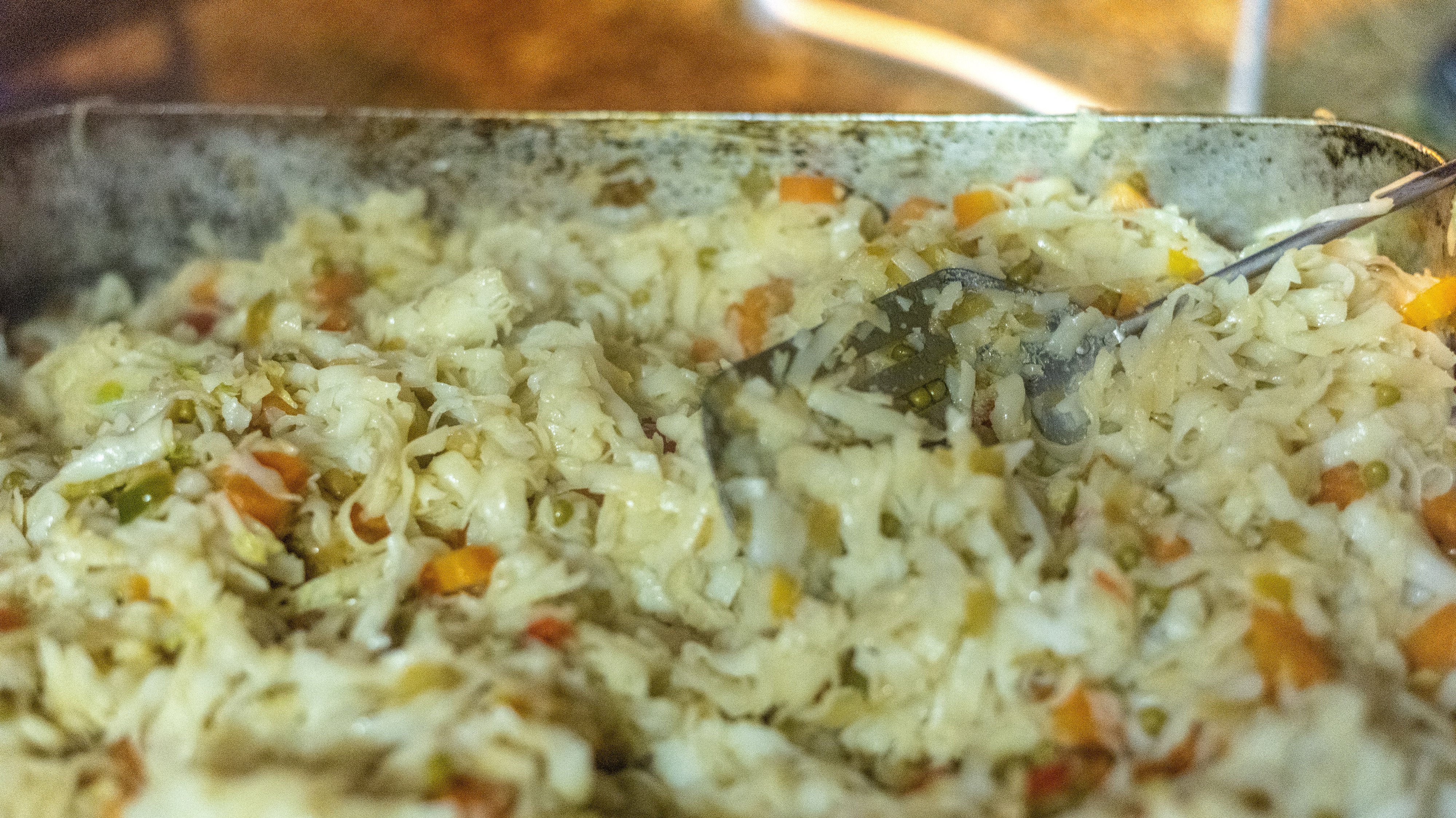 5. Laisser cuire encore 10 minutes sur le feu bien fort, en remuant régulièrement, pour ne pas faire brûler la préparation. Puis, pousser le mélange dans un coin du plat pour faire cuire les œufs, un peu comme des œufs brouillés. Si ça n’est pas possible, tu peux le faire dans une poêle séparée.