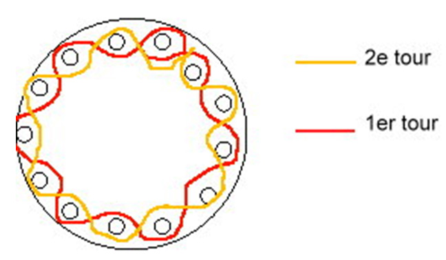 Plante des cure-dents sur le pourtour du socle en liège, en veillant bien à conserver le même espace entre les cure-dents et à en avoir un nombre impair (important pour le tressage).
