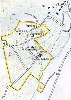 On trouve également sur la propriété une ferme, aménagée en lieu d’accueil et de réunion (cuisine collective, salle à manger, petites chambres, salles de réunion), des blocs sanitaires indépendants, une chapelle en plein air, deux théâtres de verdure,...