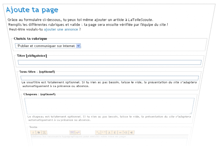 LaToileScoute est un site conçu, réalisé, entretenu et alimenté par une équipe 100% bénévole.