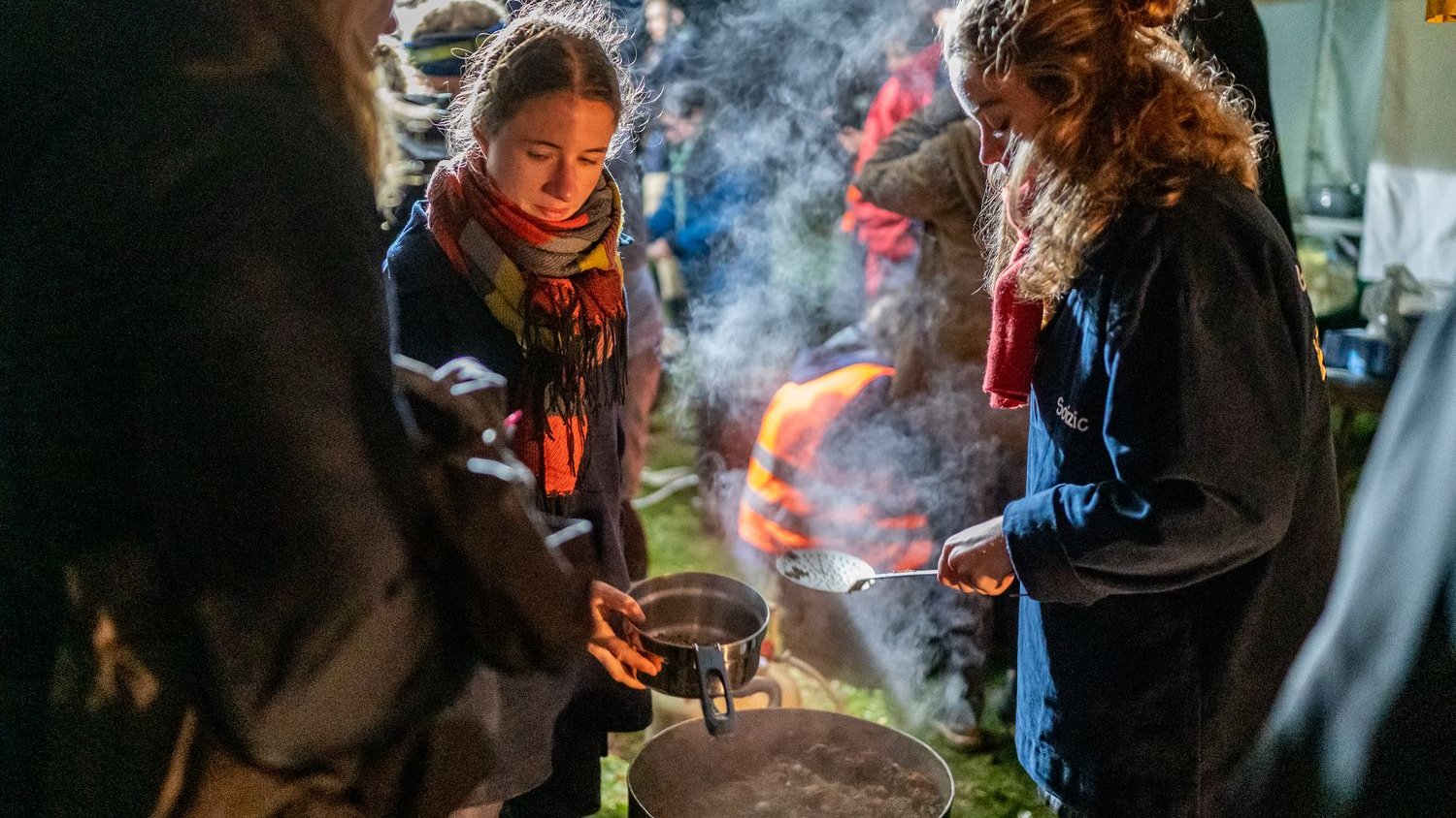 Les jeunes ont 1h pour fabriquer une soupe, la meilleure possible. Ils sont regroupés en 4 équipes et doivent faire un feu, réunir leurs ingrédients et les préparer. Au bout d’une heure, un jury tiré au hasard goûte les 4 soupes et fait des petits sketchs pour la dégustation.