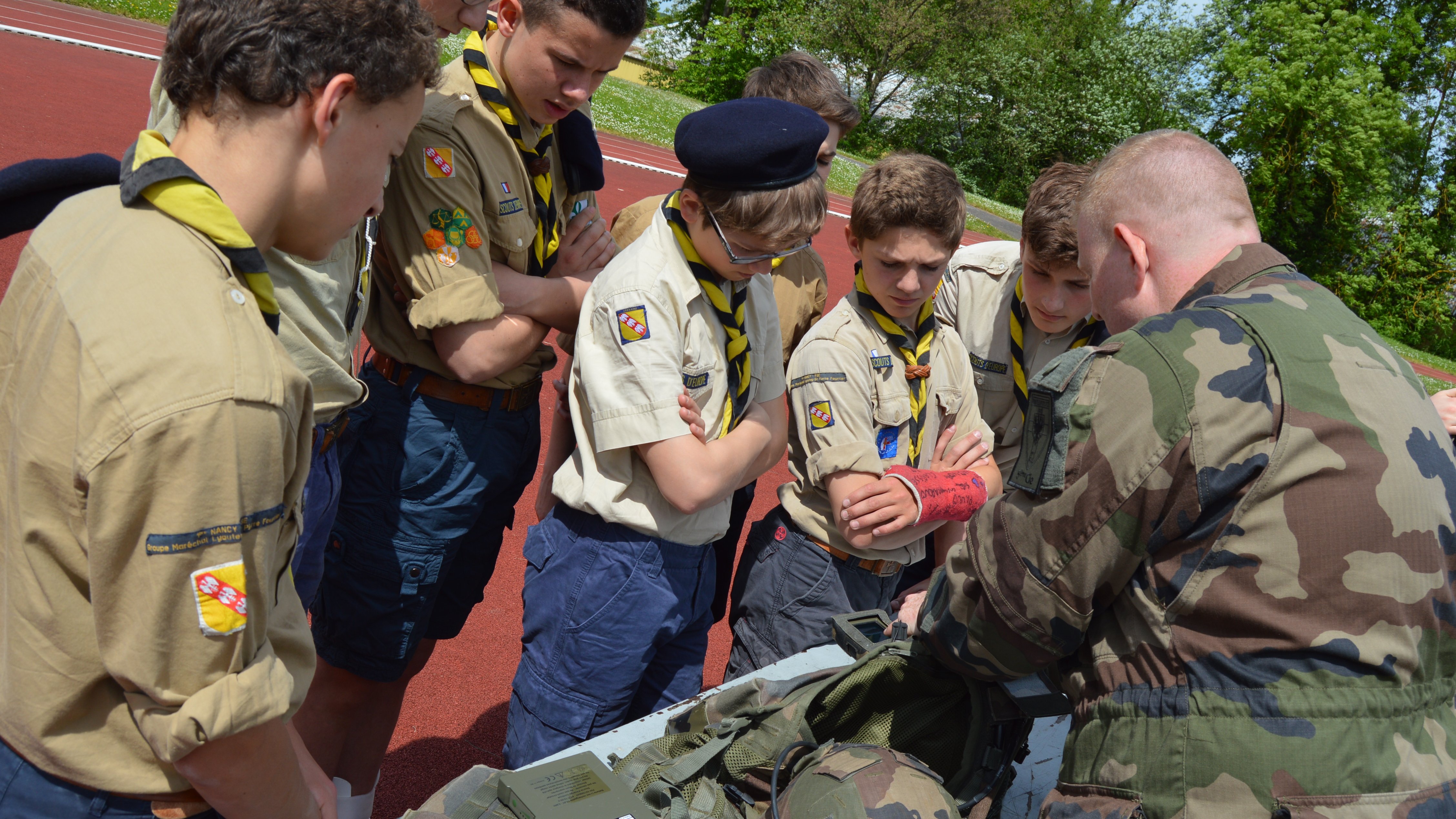 Public attentif et intéressé, les scouts ont pu se rendre compte du degré de sophistication et du poids de l’équipement du fantassin au 1er RI. Ils ont aussi pu tester diverses infrastructures sportives du régiment en présence des personnels du CSA PICARDIE, avec notamment le mur d’escalade ou le stand de tir à plomb.