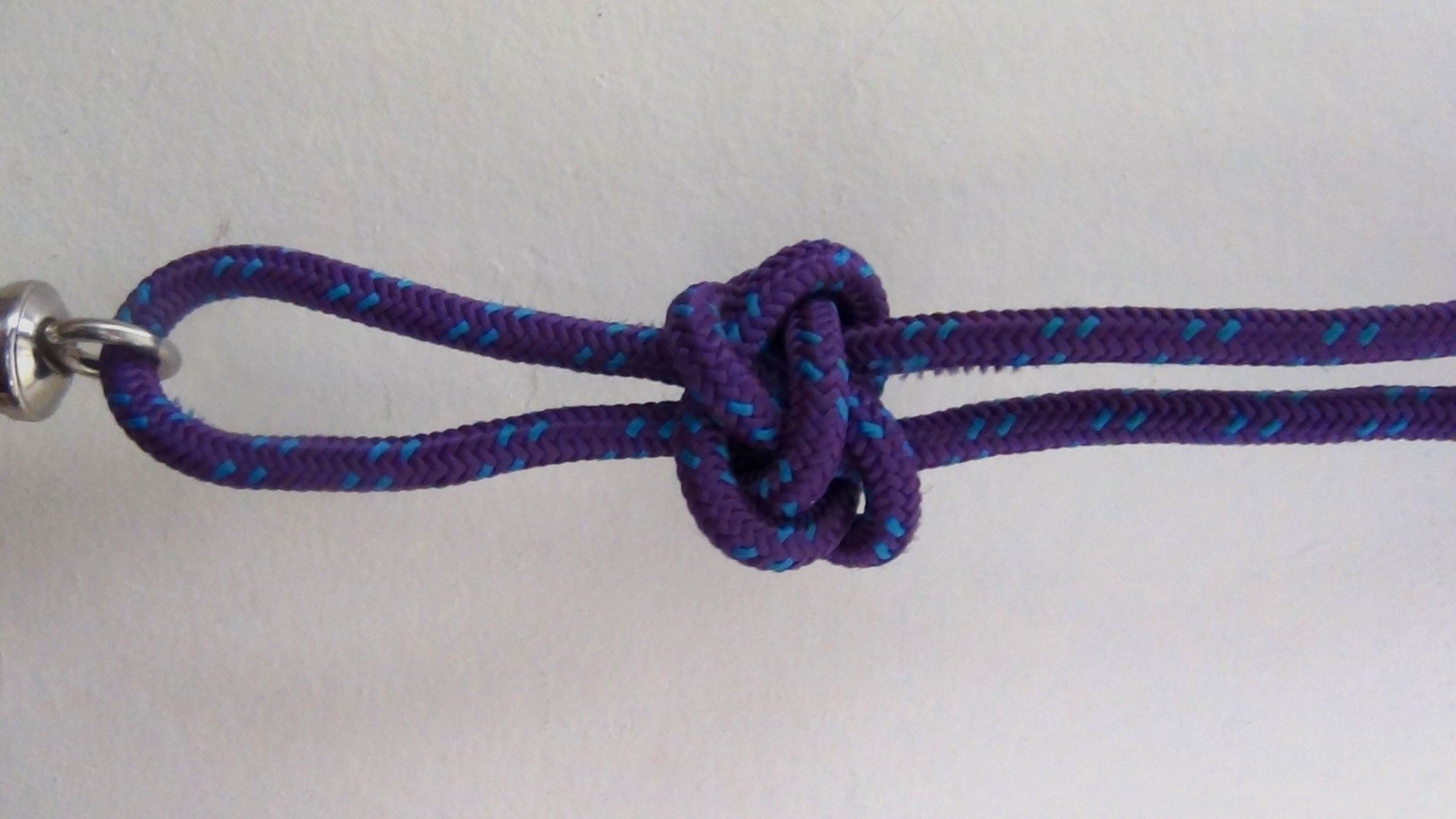C’est très simple : munis-toi d’un bout de drisse d’environ 1 mètre 50. Adapte cette longueur à ton tour de cou, le but n’est pas de t’étrangler une fois le nœud fini.