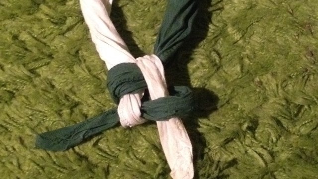 – deux ficelles aux couleurs de ton foulard, de diamètre 4/5 mm et d’environ 1m50/2m (choisissez de beaux fils, le mieux étant de la paracorde ou des fils de passementerie achetables dans des magasins de couture)