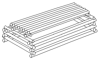 Le second niveau de perches (environ 30 cm au dessus du premier) est placé à l’intérieur du trépied, couvert d’une claie en dosses ou en perches d’environ deux doigts de section (2 cm ou un peu plus), l’important c’est que ce soit le plus horizontal possible.