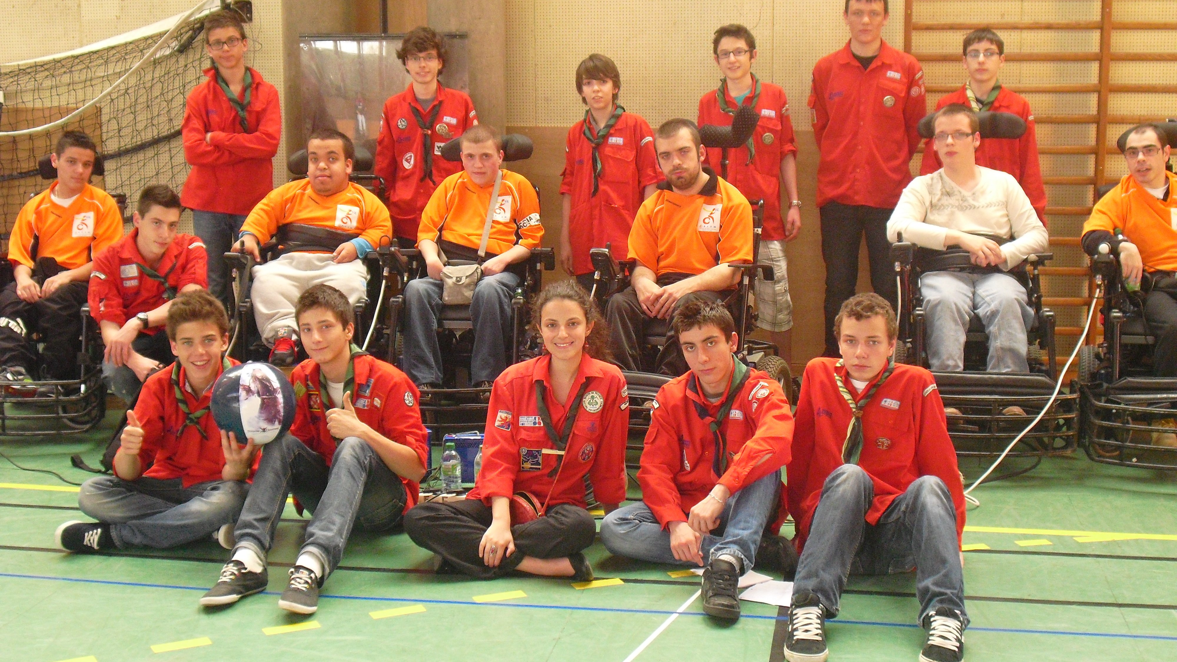Nous, pionniers du Sacré-Coeur de Lyon, nous sommes retrouvés et avons participé au championnat de France de football en fauteuil de 2ème division au gymnase Marcel Dargent à Lyon le 31 mars 2012.