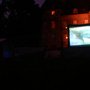 Retour au camp, une surprise de taille nous attendait pour la veillée : un écran géant gonflable dressé devant le château pour une projection d’un film. Nous étions sous des tentes à l’abri de la pluie qui était malheureusement là.