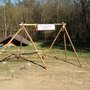 Un speleobox tout en bois et en cordes. Les scouts doivent trouver des indices à l’intérieur du spéléobox pour trouver le code leur permettant d’ouvrir la porte pour sortir.