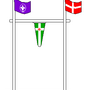 Un grand mât principal prolongé par une flèche et coupé par une traverse. On peut accrocher un drapeau ou une flamme à la flèche et de 2 à 4 drapeaux à la traverse (ces derniers seront alors plus bas, il est donc conseillé d’attacher le « principal » à la flèche.