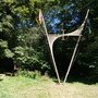 Pour la flèche, il est nécessaire de faire un mi-bois chevillé en son centre pour pouvoir la faire tenir correctement (voir dessin). Un brêlage est nettement insuffisant, l’expérience le montre. L’esthétique nous conseille de l’incliner comme sur les schémas.