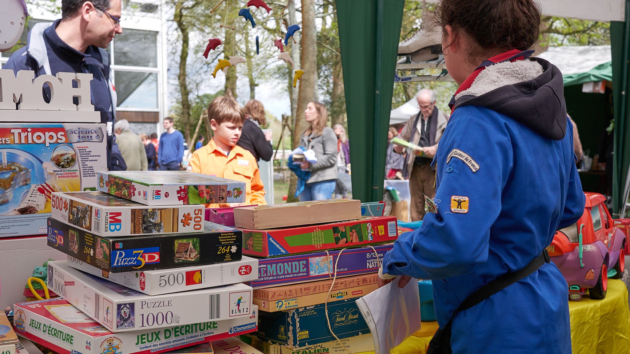 Ce vide grenier a sa réputation sur la ville. Les chineurs et antiquaires le savent : il permet souvent de faire réapparaitre à la surface des objets rares qui trainaient dans des greniers. Amateurs de bandes dessinées en recherche d’éditions originales, amateurs de meubles en recherche de modèles rares, il vaut mieux être à midi pile à l’ouverture pour faire les affaires. Les scouts et guides dont la spécialité est, c’est bien connu, de définir des prix, font du mieux qu’ils peuvent pour trouver un prix juste. Mais magie du vide grenier scout, les chineurs connaissent la cause, et n’hésitent pas à donner un peu plus.