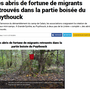 En effet, les "abris de fortune" ne sont pas de la responsabilité de migrants, mais l’œuvre de stagiaires en formation BAFA qui étaient en approfondissement BAFA nature et environnement sur la Base du Puythouck à Grande-Synthe du 22 au 27 octobre et ont utilisé quotidiennement les parties boisées du puythouck comme support d’activités et de temps de formation. Les "abris de fortune" et notamment celui en illustration de l’article ont été construits dans le cadre de jeux et d’activités, aucun migrant n’est à l’origine de ces constructions qu’il semble difficile de prendre pour de réels abris.